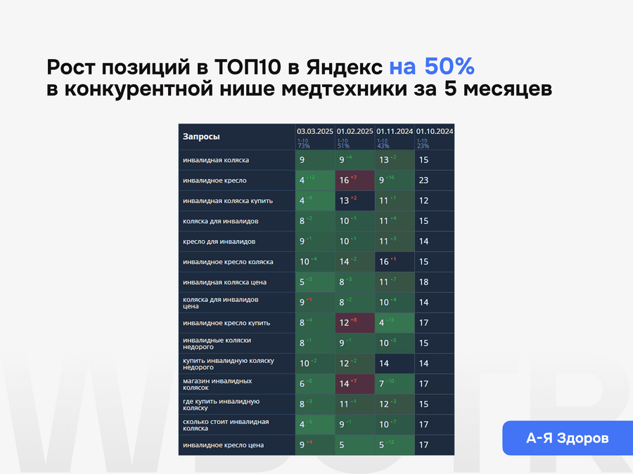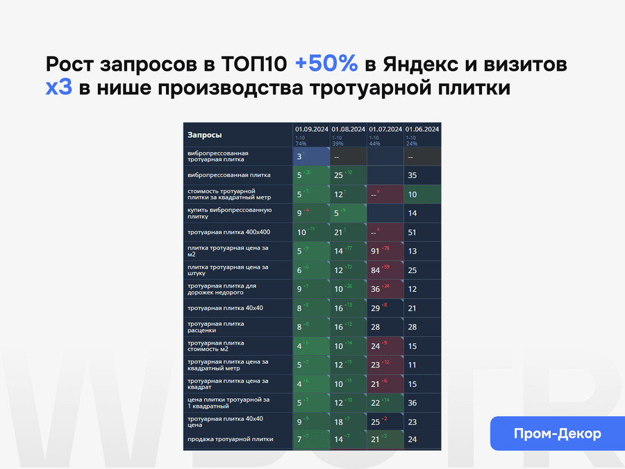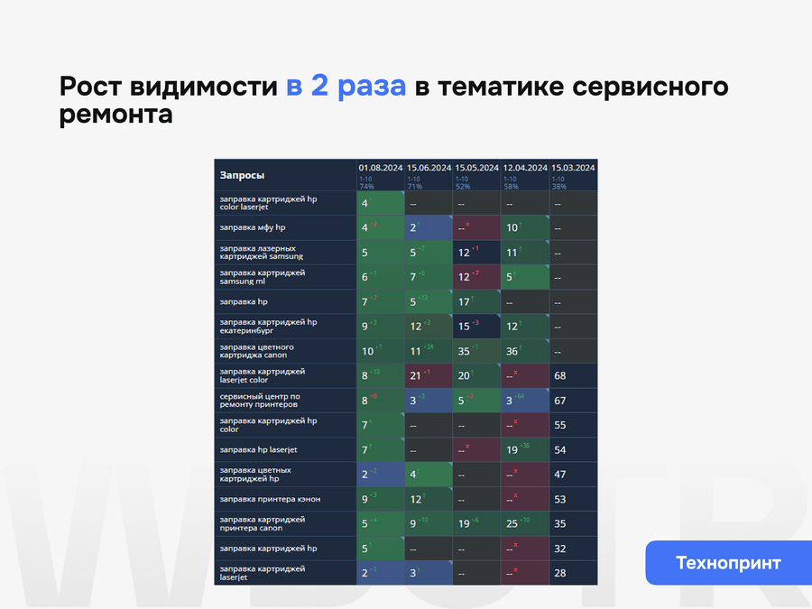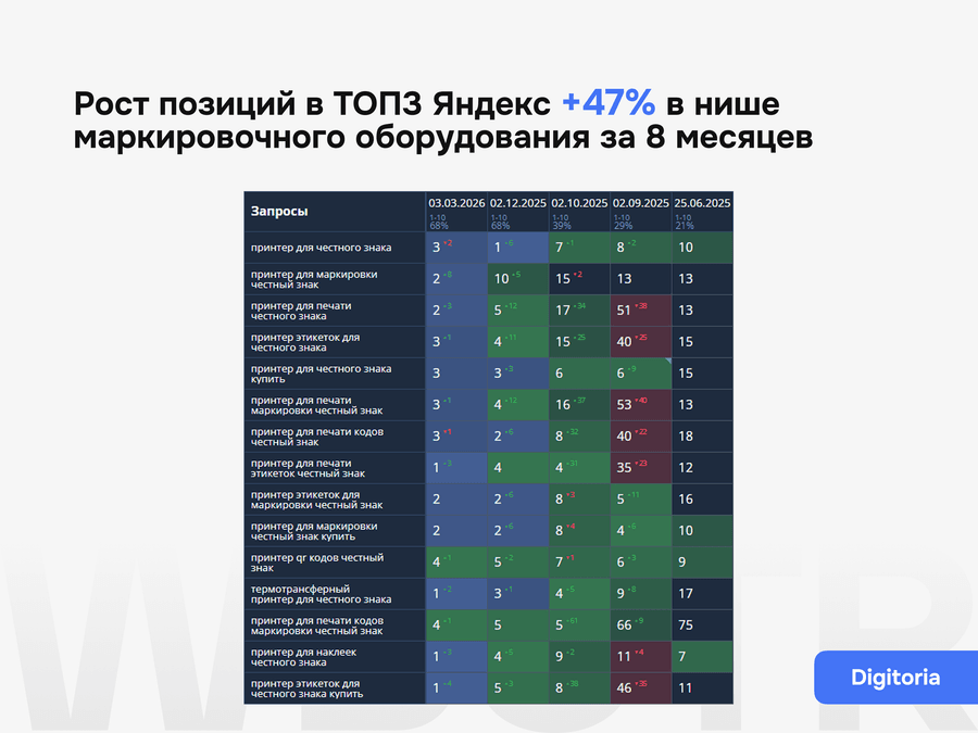 Поисковая оптимизация не заканчивается после внедрения базовых правок. Важно понимать, как сайт меняется после доработок, какие страницы усиливаются, где появляется рост, а где нужна следующая итерация работ. Поэтому мы не просто внедряем изменения, а контролируем их эффект и переводим сайт в режим системного развития.
